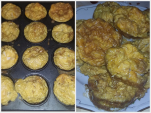Tegnap este elkapott egy kreatív hullám és tojásokat fújtam, festettem, így kellett ma tojásos reggelit tervezni. Többször is láttam már a neten, hogy muffinsütőben milyen klassz kis falatokat lehet alkotni tojásból. Sok tojás maradt ki, úgyhogy én csak tojással töltöttem ki őket, most más nem fért bele, illetve sóztam és borsoztam. Íme a végeredmény: