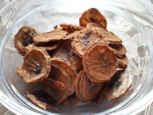 Vékony szeletekre felvágtam a banánt, majd egy tepsiben sorba raktam őket sűtőpapíron. Lekentem citromlével és megszórtam fahéjjal. Kb. 2 órán keresztül sült először 70, majd 120° (ezt még ki kell tapasztalni, hogy hogy lenne a legjobb, hogy jól süljön és ne nagyon maradjon ragacsos).